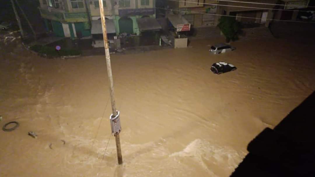 شوارع الغيضة عاصمة المهره يفترسها إعصار #تيج والسيول تملى الشوراع وهناك مناطق اصبحت معزولة بسبب السيول الجارفة