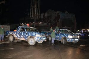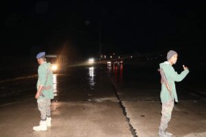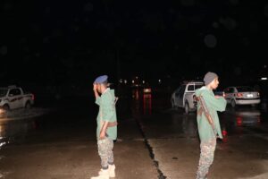 وتمركز انتشار القوات الأمنية عند كافة الجسور ومجاري السيول والأماكن التي تشهد ازدحامات وتجمعات سكانية غرب وشرق ووسط مدينة المكلا عاصمة المحافظة؛ وذلك لاتخاذ الإجراءات الاحترازية الكاملة للحد من أي آثار محتملة للاعصار المداري ”تيج“، والحفاظ على سلامة الأرواح والممتلكات.