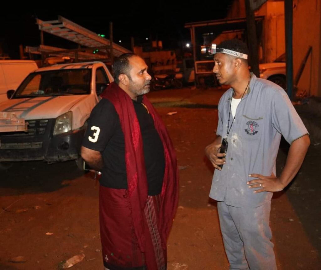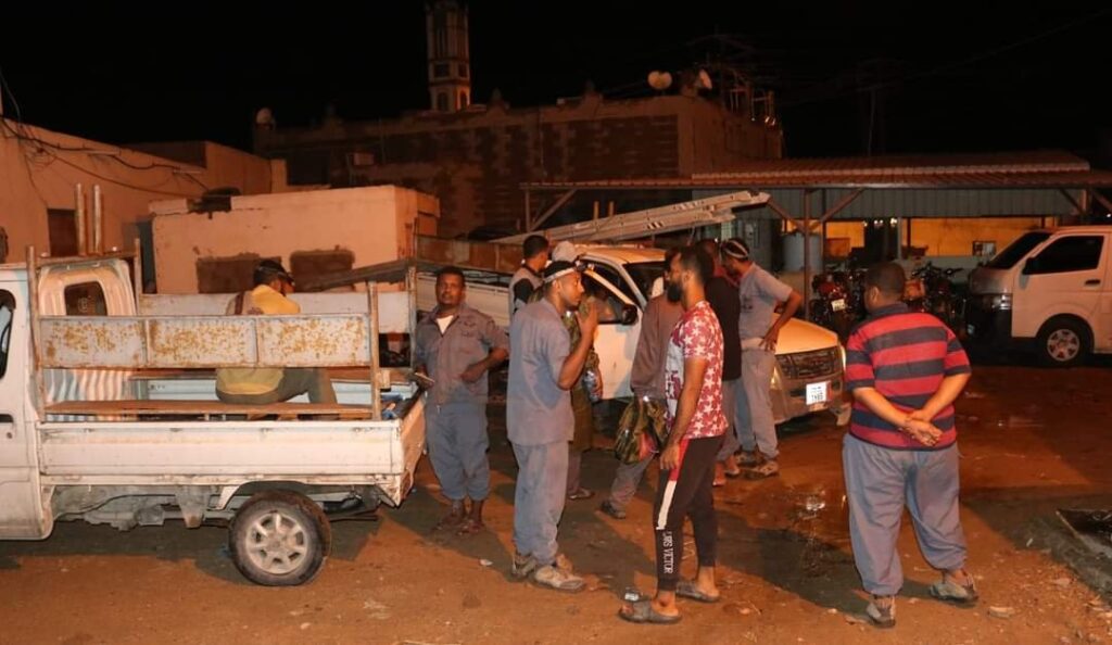 في ظل المنخفض المداري ورغم الأجواء الممطره والرياح الشديدة ، مدير عام مؤسسة كهرباء ساحل حضرموت المهندس مازن عبدالحكيم بن مخاشن يتفقد أعمال صيانة واصلاح شبكات توزيع التيار الكهربائي التي تنفذ من قبل الفرق الفنية المختصة بالمؤسسة في عدة مواقع مختلفة ، وذلك خلال جولته الميدانية التي قام بها بمدينة المكلا في ساعات متأخرة من الليل برفقة مستشاره الأستاذ محمد بامزاحم .
