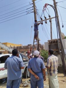 وتابع المهندس “بن مخاشن” الاعمال الجارية بمديرية الريدة وقصيعر لاصلاح اعطال الشبكة وخطوط نقل التيار وفي ذات السياق وصلت صباح فجر اليوم فرق اخرى من مهندسين وعمال المؤسسة الى محافظة المهرة وفور وصولها باشرت في اعمال اصلاح الاعطال في شبكة التوزيع الكهربائية بمحافظة المهرة التي تعرضت لأضرار كبيرة جداً ناجمة عن اعصار تيج .