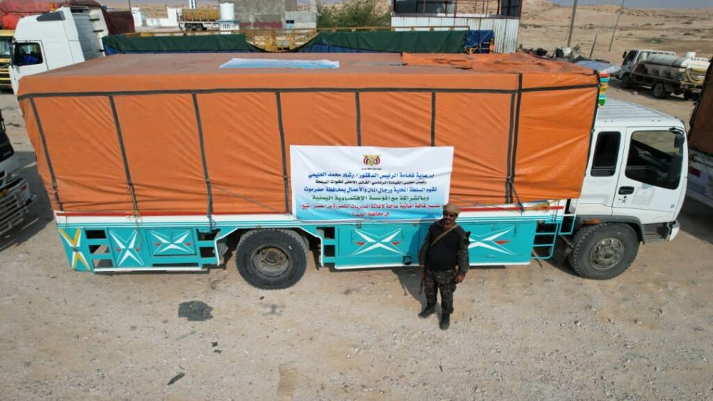 وشهد محافظ حضرموت الأستاذ مبخوت مبارك بن ماضي، اليوم بمدينة “حصوين” وصول القافلة، ومعه المدير العام المؤسسة اليمنية الاقتصادية العميد سامي السعيدي، ووكيل محافظة حضرموت للشؤون الفنية المهندس امين بارزيق، ووكلاء المحافظة سالم بن شرمان، وفهمي باضاوي، ومحمد بن جربوع الصيعري.