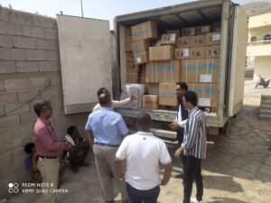 بعد ذلك تم توزيع الكميات من الأدوية و المستلزمات الطبية على المرافق والوحدات الصحية بحسب خطة مكتب وزارة الصحة بالمحافظة .