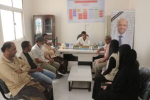 واستمع ممثلي المؤسسة من الأمين العام للمجلس المحلي عن الأضرار الناجمة من إعصار تيج في مديرية الريدة وقصيعر وأماكن النازحين المتضررين واعداهم واهم احتياجاتهم العاجلة.