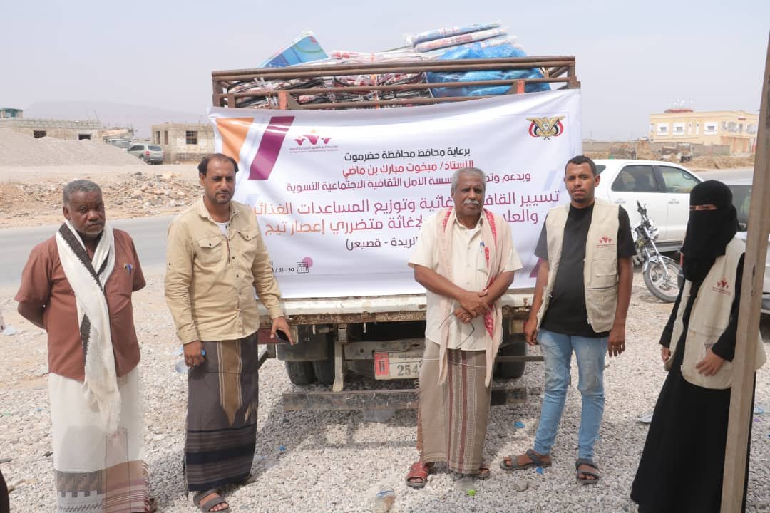 وتأتي هذا القافلة في إطار التدخلات العاجلة الذي تقدمها مؤسسة الأمل الثقافية الإجتماعية النسوية للمتضررين من إعصار تيج في مديريات الريدة وقصيعر بتقديم الإغاثة العاجلة وتقديم المساعدات الغذائية والعلاجية الأولية.
