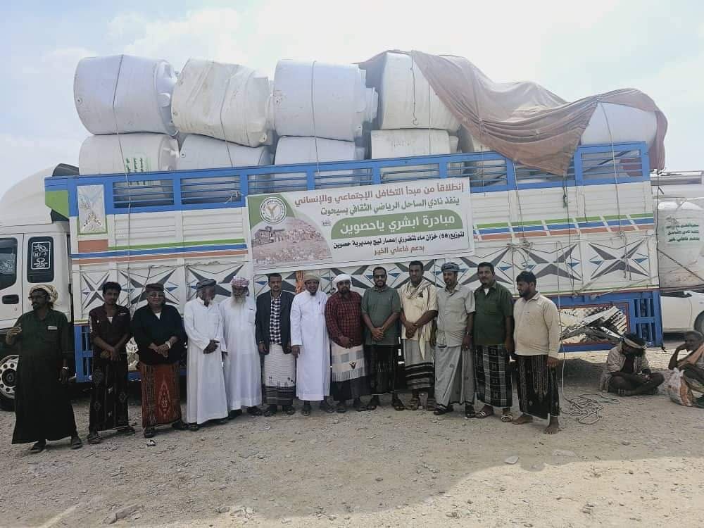 ومن جانبه، أفاد رئيس نادي الساحل الرياضي بسيحوت الأستاذ علي محفوظ جعرة، بأن حملة توزيع خزّانات المياه التي أطلقها النادي ، تأتي من منطلق إحساسنا بالمسؤولية والواجب اتجاه إخواننا المتضررين بحصوين، وإيماننا بالدور الذي يجب أن تلعبه الأندية والذي لا يقتصر على الأنشطة الرياضية فحسب، بل تفعيل الدور المجتمعي لا سيما في فترة الكوارث والأزمات.