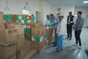 دشن الدكتور محمد صالح الجمحي المدير العام لمكتب وزارة الصحة العامة والسكان بحضرموت الساحل ، وبحضور مندوب منظمة بيورهاندز الدولية ، استلام شحنة أدوية تخصصية مقدمة من منظمة بيورهاندز الدولية ، بالتنسيق مع البرنامج الوطني للإمداد الدوائي بالوزارة ، وبرعاية كريمة من معالي وزير الصحة العامة والسكان أ.د. قاسم محمد بحيبح ومحافظ محافظة حضرموت أ. مبخوت مبارك بن ماضي .
