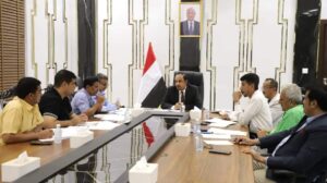 حيث تم في الاجتماع الذي حضره وكيلي المحافظة للشؤون الفنية المهندس أمين بارزيق، وللشؤون المالية والإدارية الدكتور أحمد باصريح، إقرار مشروع توريد مواد لتحسين شبكة المياه الداخليه جوار مسجد الشهداء بحي أكتوبر بديس المكلا، واعتماد مشروع إعادة تأهيل جسر حويرة بمنطقة العيون مديرية غيل باوزير، واعتماد مشروع تأهيل موقع رفع المجاري الحالي بمنطقة الرملة وادي سمعون بمديرية الشحر.