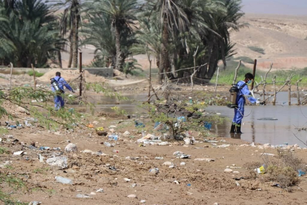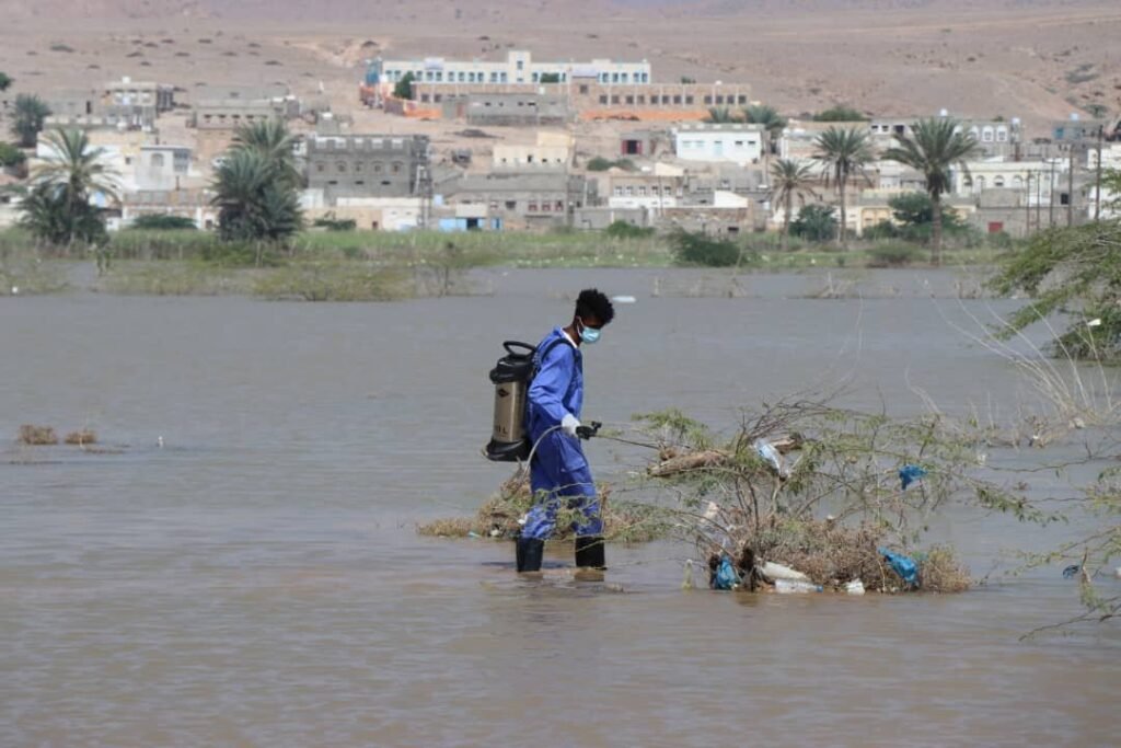 وأكد المدير العام بأن لتفادي الكارثة الصحية تباشر فرق الرش لهذه البحيرة التي يصعب تصريفها وذلك من خلال الرش بالمبيدات للقضاء على الحشرات والميكروبات .. موضحاً بأنه لإعادة ربط المنطقة بالريدة الشرقية عملت السلطة المحلية بالمديرية على فتح طريق آخر يتمكن من خلاله المواطنين من عملية التنقل اليومي مشيراً بأنه ومن ضمن معالجة أثار إعصار “تيج” تم تقديم أكثر من مائة سلة غذائية من قبل الهلال الأحمر لمتضرري منطقة كروشم واعداً باستمرار المعالجات لآثار الأضرار من قبل السلطة المحلية والجهات الداعمة.