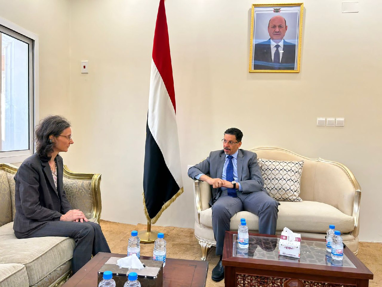 بحث وزير الخارجية وشؤون المغتربين الدكتور أحمد بن مبارك، اليوم، في العاصمة المؤقتة عدن، مع سفيرة فرنسا لدى اليمن كاترين قرم كمون، تطورات الأوضاع في اليمن وجهود تحقيق السلام والوصول لتسوية سياسية.