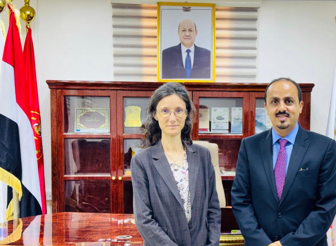 بحث وزير الإعلام والثقافة والسياحة معمر الارياني، اليوم، في العاصمة المؤقتة عدن، مع سفيرة جمهورية فرنسا لدى اليمن كاترين قرم كمون، تعزيز علاقات التعاون بين البلدين الصديقين، سيما في المجالات الثقافية، وسُبل تطويرها.