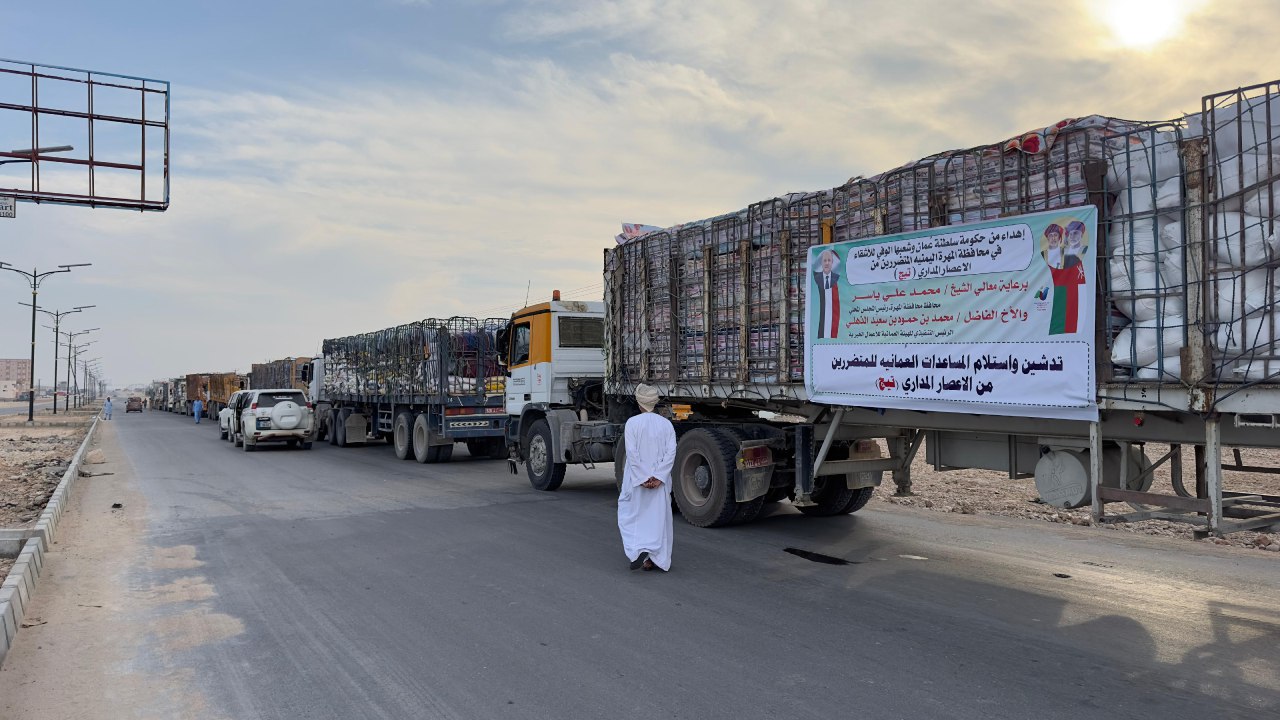 وصول مساعدات اغاثية للمتضررين من اعصار “تيج” مقدمة من سلطنة عمان الأمين العام بن نيمر يدشن استلام المساعدات العمانية للمتضررين من إعصار ” تيج”
