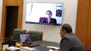وتطرق اللقاء الذي جرى عبر تقنية الاتصال المرئي الى التطورات السياسية في اليمن والجهود المبذولة لإحلال السلام انطلاقًا من حالة الاستقرار في حضرموت.