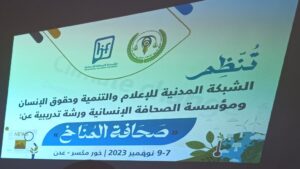تنظم الشبكة المدنية للاعلام والتنمية وحقوق الانسان ومؤسسة الصحافة الانسانيةدورة تدريبية عن ” صحافة المناخ ” والتي تم افتتاحها اليوم بالعاصمة عدن.،و ستستمر لمدة ثلاثة ايام بمشاركة ” 17″ صحافيا وصحفية من مختلف وسائل الاعلام بعدن .