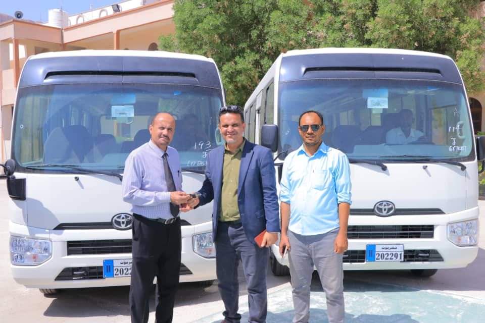 ضمن اهتمام الجهات المسؤولة برفد العملية التعليمية بجامعة سيئون ومساندتها في هذه الظروف استلمت الجامعة من الحكومة باصين نوع كوستر وسيارة تويوتا .