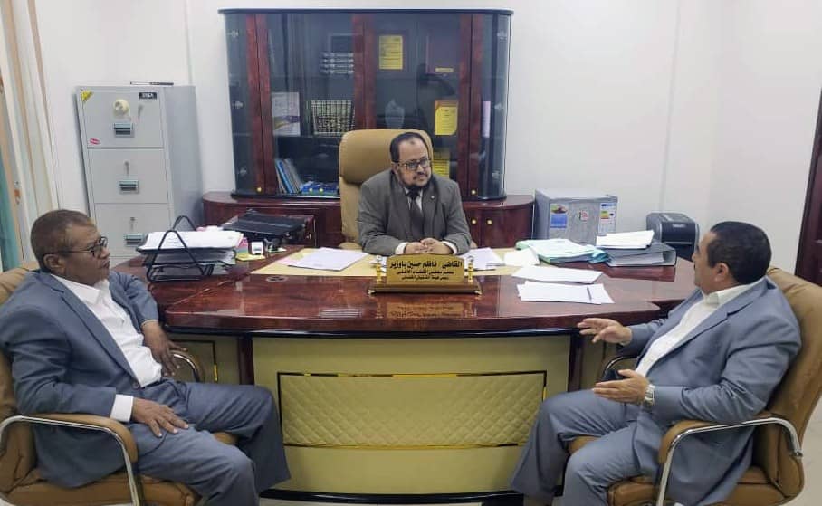 ناقش رئيس هيئة التفتيش القضائي القاضي ناظم باوزير، اليوم ، بالعاصمة الموقتة عدن، مع محافظ محافظة حجة اللواء عبد الكريم السنيني، أوضاع السلطة القضائية ومستوى العمل القضائي في المحافظة، ورفع مستوى أداء المنظومة القضائية.
