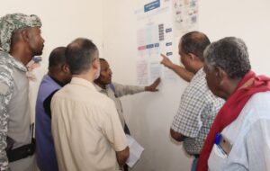 وخلال الزيارة أطلع الجمحي على الوضع الوبائي و الصحي وسير العمل بمركز الإسهالات المائية الحادة بمنطقة ميفع ، حيث كان في إستقباله المدير العام لمديرية بروم ميفع الدكتور خالد حسن الجوهي و مدير مكتب الصحة والسكان بالمديرية الأستاذ سالم أحمد بارميل وعدد من العاملين الصحيين والمختصين بالشأن الوبائي والصحي بالمديرية ، مستمعا منهم على مستوى الخدمات الصحية والعلاجية والوضع الوبائي بعد ظهور حالات لمرض الكوليرا مؤكدة وحالات أشتباه اخرى بالمديرية وكيفية التعامل معها وفق الخطة الطارئة لمكتب وزارة الصحة العامة والسكان للحد من خطورتها وتفشيها بشكل عام ، مشدداً على ضرورة ثكتيف الجهود داعياً الجميع إلى الالتزام بالطرق الوقائية و الإرشادات للحفاظ على سلامتهم مؤكدا بأن الحالات التي تم اكتشافها قد ثماثلت للشفاء ، داعيا المختصين التعامل مع حالات الإشتباه وتقديم لهم الرعاية الصحية ، مشيدا بدور السلطة المحلية ومكتب الصحة والسكان والكادر الصحي وكافة العاملين الصحيين بالمديرية ، كما قام الجمحي بزيارة إلى مركز الإسهالات المائية الحادة بمنطقة ميفع موجها بالأستعددات واستقبال الحالات الطارئة وتقديم لهم خدمات الرعاية الصحية الأولية لما من شأنه خدمة المرضى .