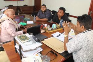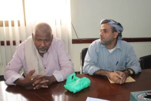 بحث المدير العام لمديرية مدينة المكلا العميد ركن عبدالله سالم بايعشوت مع مدير مكتب الواجبات الزكوية بالمديرية خالد يسر باسعد سبل تحسين أداء مكتب الواجبات الزكوية.