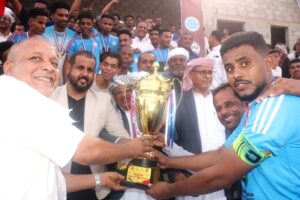 كما اشاد الشيخ / العامري بالترتيب والتهيئة والجهود من قبل فرع اتحاد كره القدم رئيس واعضاء ولجنة مسابقات وحكام علي الجهود لي بذلوها لإنجاح هذه البطولة وحسن التنظيم لها الذي كان واضحا في نهائي مميز لهم كل الشكر والتقدير ، مناشدا البيوت التجارية ورؤوس الاموال بحضرموت الوادي والصحراء ان تحذوا مجموعة الماهر التجارية في الاهتمام بالشباب بإقامة البطولات التنافسية في مختلف الالعاب الرياضية للإسهام في حفظ الشباب في ممارسة هوايتهم وعدم الانجرار فيما يحمد عقباه .