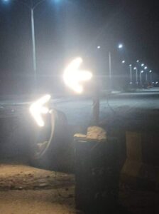 بتكليف ملازم اول/ماهرالجابري، قائد نقطه ك3 يوم امس بمرافقه المهندسين الكهربائين في تصليح إنارة الشارع العام المطار من منطقه الشقق الي حي المطار القديم مع إضافة لافتات ضوئية ترشد سائقي السيارات على تحويل الخط من أجل سلامتهم