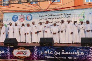 وبدأت فعاليات الزواج الجماعي الذي حضره عضو مجلس النواب المهندس فؤاد واكد ومدير عام مديرية الشحر عادل باعكابة ومدير السلطة المحلية بمركز الحامي والمقد محمد بن الشيخ أبوبكر ورئيس لجنة الزواج الجماعي بالحامي عمر عبدالله بقرف وبمشاركة واسعة من الوجهاء والشخصيات الاجتماعية وأولياء أمور وأهالي العرسان والعراوس وجمع غفير من المواطنين، بمراسيم عقد النكاح للعرسان، في مسجد جامع الروضة.