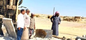 تفقد المدير العام لمديرية وادي العين وحورة رئيس المجلس المحلي الأستاذ سالم صالح بن عبادين باوزير اليوم سير العمل الجاري بمشروع حفر بئر إرتوازية لمشروع مياه الرقيبة بمنطقة القاع .