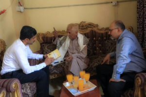 واطمأنَّ الفريق خلال الزيارة على صحة الشاعر عبد الكريم مستمعين منه إلى شرح واسع عن وضعه الصحي والمعيشي.