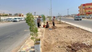 وتقدم الطواقم العاملة من مهندسي وصناع الجمال بقسم التشجير والتحسين بالمشروع جهود كبيرة ومتواصلة في تنفيذ أعمال القص والتهذيب والعناية بالتشجير بشكل متواصل في العديد من الشوارع الرئيسية وتحسين صورتها الجمالية ويضفي لها رونق متميز .
