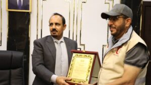 وكرّم المحافظ الهلال الأحمر الاماراتي عرفانًا بتدخلاته الاغاثية والانسانية، ومساندته لجهود الإغاثة جراء إعصار “تيج”.