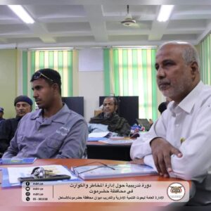 ويستهدف البرنامج ٣٠ متدربا ومستفيدا من مديري العموم و لجان الطوارئ في المديريات المستهدفة ( المكلا ، غيل باوزير ، الشحر ) ويستمر خلال الفترة من ( ٢٦ إلى ٣٠ ) نوفمبر الجاري ويدرب في البرنامج الدكتور عبدالله كعيتي