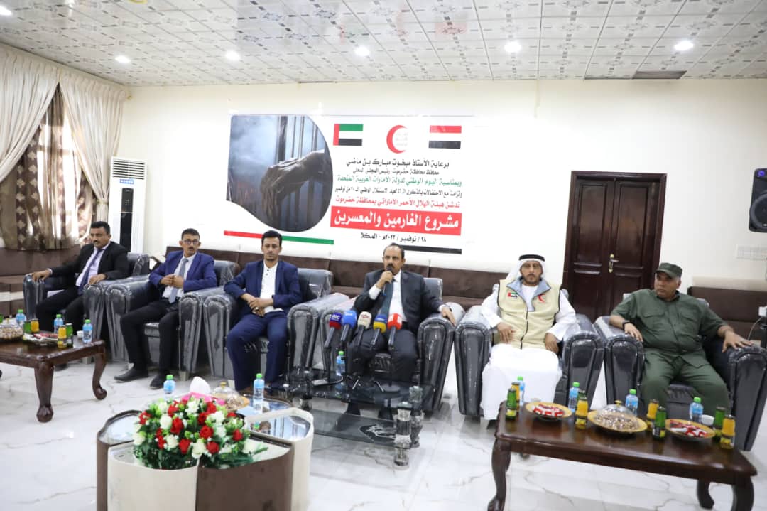 وقال ممثّل الهلال الأحمر الإماراتي بحضرموت حميد الشامسي إن المشروع يهدف الى تسديد الديون عن المعسرين في سجن المكلا المركزي وتأهيلهم خلال الربع الأخير من عام 2023م، وتفريج الكُرب عنهم بعد أن أوقعتهم ظروف الحياة في قبضة الديون وتخفيف الأعباء المالية على كاهلهم وتوفير الرعاية اللاحقة لهم في ايجاد مصادر للدخل توفّر لهم حياة كريمة، مشيرًا الى ان دولة الامارات العربية المتحدة أطلقت هذا المشروع لتوفير سبل العيش الكريم لهذه الشرائح ومساعدتها لتكون فاعلة في المجتمع، مقدمًا الشكر لمساهمة محافظ حضرموت والاجهزة الامنية والسلطة القضائية في تذليل الصعاب ليرى هذا المشروع النور وينعكس تأثيره ايجابًا في حياة الافراد المعسرين والغارمين.