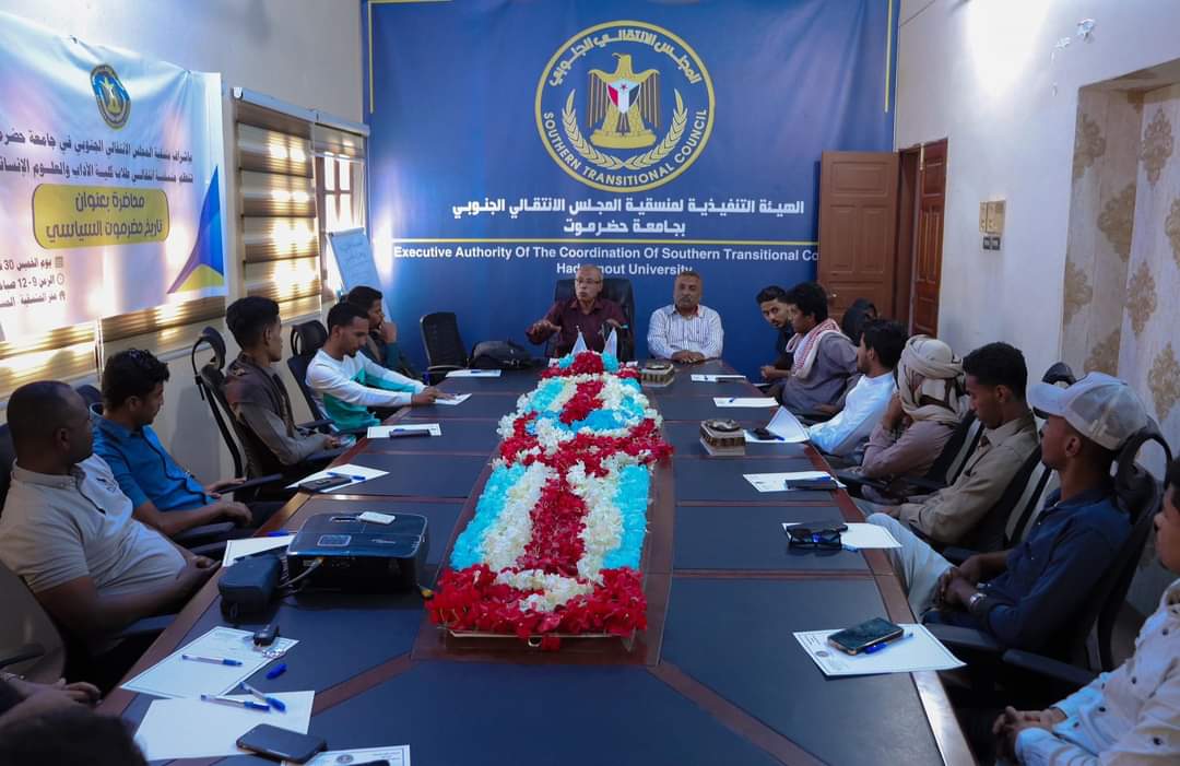 دشنت منسقية المجلس الانتقالي الجنوبي لطلاب كلية الآداب في جامعة حضرموت صباح اليوم محاضرة بعنوان ” تاريخ حضرموت السياسي” في مقر منسقية الجامعة،