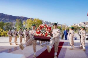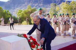 ووقفت القيادة دقيقه حداد عرفانا بالتضحيات التي قدمها الشهداء الأبرار فداءً لأرض الجنوب وشعبه، سائلين المولى أن يتغشاهم بالرحمة والمغفرة، وأن يسكنهم الجنة مع الأنبياء والصديقين والشهداء والصالحين.