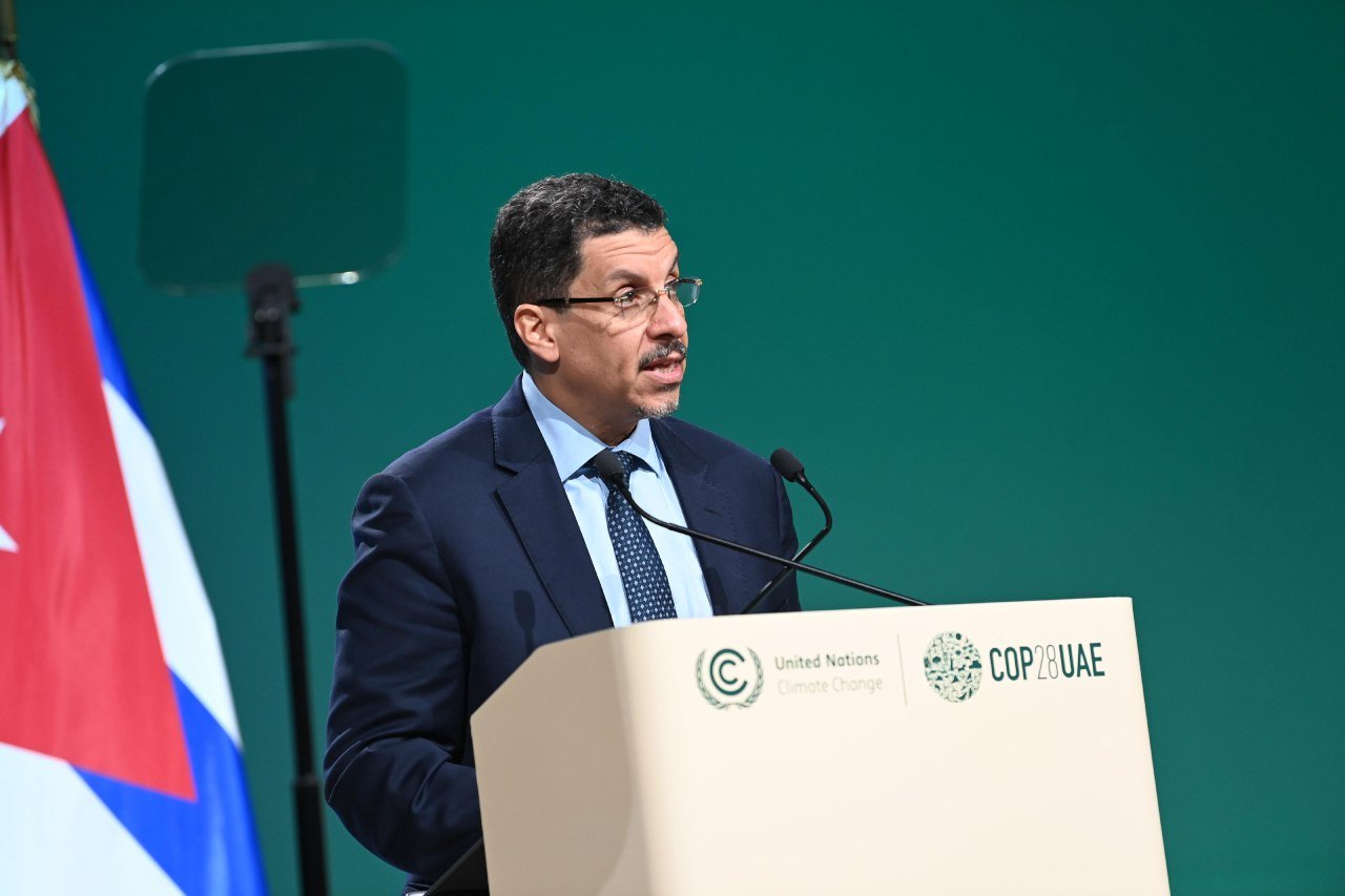وقال رئيس مجلس القيادة الرئاسي في كلمة القاها بالنيابة عنه وزير الخارجية وشؤون المغتربين الدكتور احمد عوض بن مبارك، امام قمة قادة مجموعة ال77 والصين، على هامش مؤتمر المناخ المنعقد في مدينة دبي، انه “على الرغم من أن اليمن هو الأقل مساهمة في الانبعاثات المتسببة بظاهرة التغير المناخي، إلا أنه يأتي في صدارة الدول المتأثرة بتداعياتها السلبية، بما فيها تزايد وتيرة الأعاصير المدارية، والفيضانات، والمنخفضات الجوية والارتفاع غير المسبوق في درجات الحرارة ونوبات الجفاف الطويلة”، لافتا الى ما تخلفه تلك الظواهر من ارتفاع في عدد الوفيات والمفقودين والمتضررين اضافة إلى الخسائر الاقتصادية، والدمار الهائل في البنى التحتية، والخدمات الأساسية وسبل العيش المتواضعة.