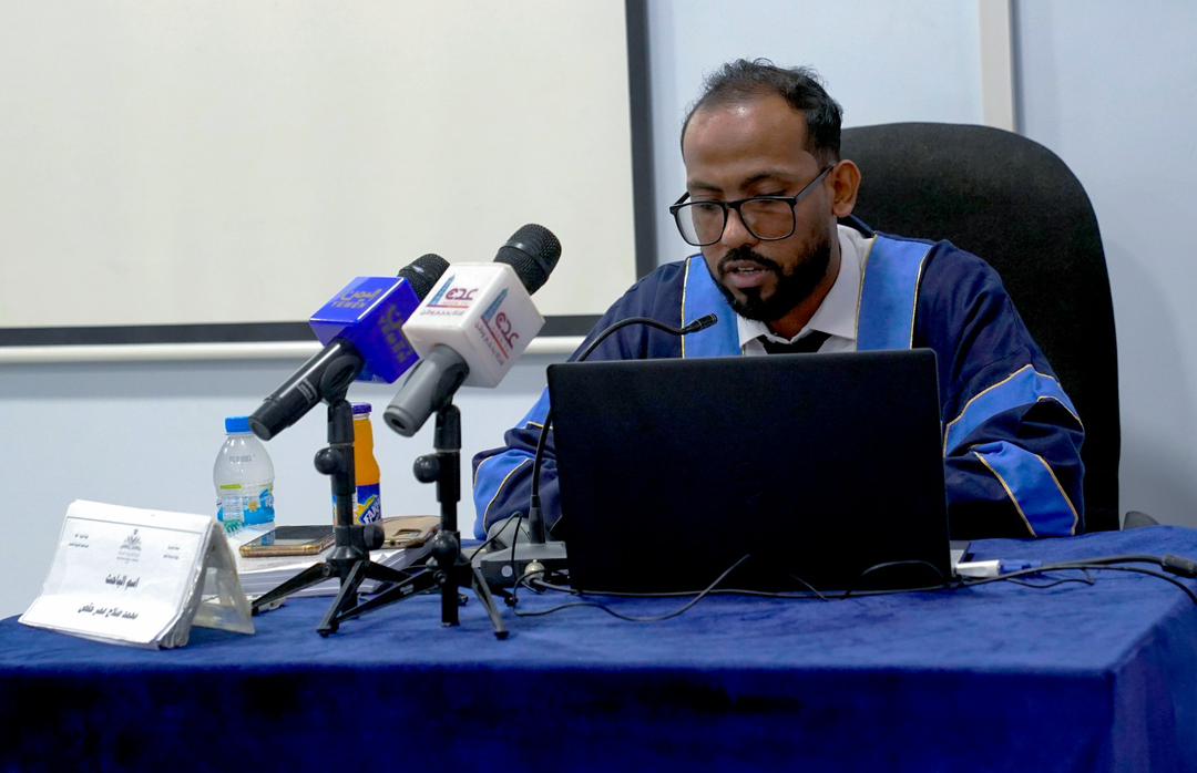 وتكونت لجنة المناقشة التي حضرها المدير العام لمكتب وزارة الثقافة بساحل حضرموت عبير الحضرمي، ونائب عميد كلية التربية للدراسات العليا والبحث العلمي الدكتور مراد باهادي، تكونت من الأستاذ الدكتور سالم أحمد بافطوم رئيسًا ومناقشًا خارجيًا من جامعة المهرة، والأستاذ المشارك الدكتور نوال محفوظ مرعي مناقشة داخليًا، والأستاذ المساعد الدكتور شوقي الدعيس مشرفًا علميًا للدراسة.