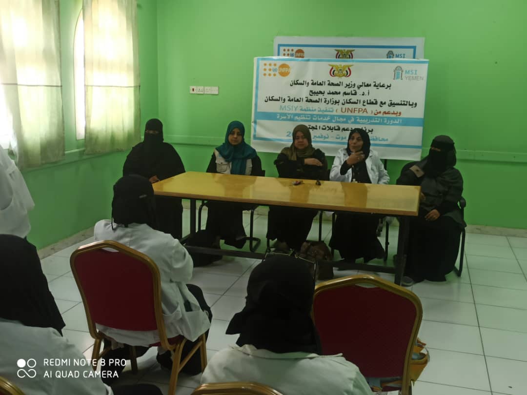 أختتمت بالمكلا فعاليات الدورة التدريبية في حزمة تنظيم الأسرة التى نظمها مكتب الصحة والسكان بحضرموت الساحل و بدعم من صندوق الأمم المتحده للسكان بالشراكة مع منظمة ماري ستوبس الدولية برعاية كريمة من معالي وزير الصحه والسكان أ.د. قاسم محمد بحيبح لعدد 8 قابلات من برنامج العيادات المنزلية وخدمات القبالة في المجتمع .