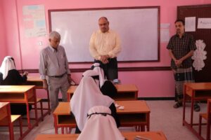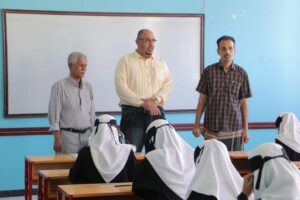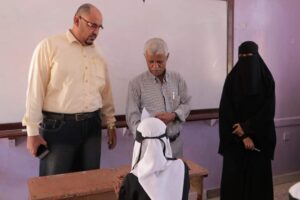 رافق المدير العام اثناء تدشين الامتحانات رئيس قسم شؤون الموظفين الأستاذ أدهم صياد و الاستاذ صلاح براهم رئيس قسم الإعلام التربوي .
