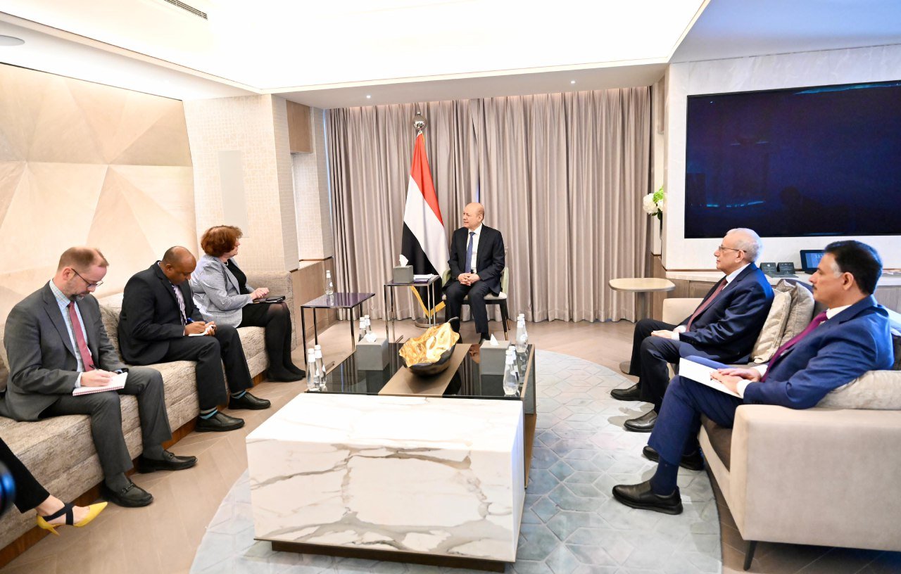 واكد رئيس مجلس القيادة الرئاسي، موقف المجلس، والحكومة الداعم لسلام عادل ومستدام بموجب مرجعيات الحل الشامل المتوافق عليها وطنيا واقليميا ودوليا.