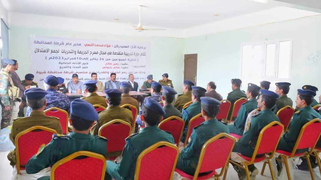 افتتح وكيل محافظة شبوة القائم بأعمال المحافظ علي الكندي صباح اليوم دورة تدريبية متقدمة في مجالات البحث والتحري وجمع الاستدلالات.