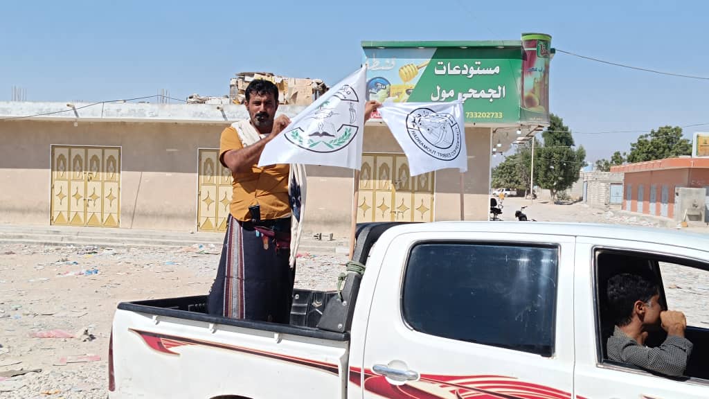 بحضور ميداني من قبل الهيئة التنفيذية وأعضاء مؤتمر حضرموت الجامع بقصيعر والشباب المنظم للفعاليات ، تم اليوم توزيع أعلام والشعارات وملصقات الهبة الحضرمية الشعبية
