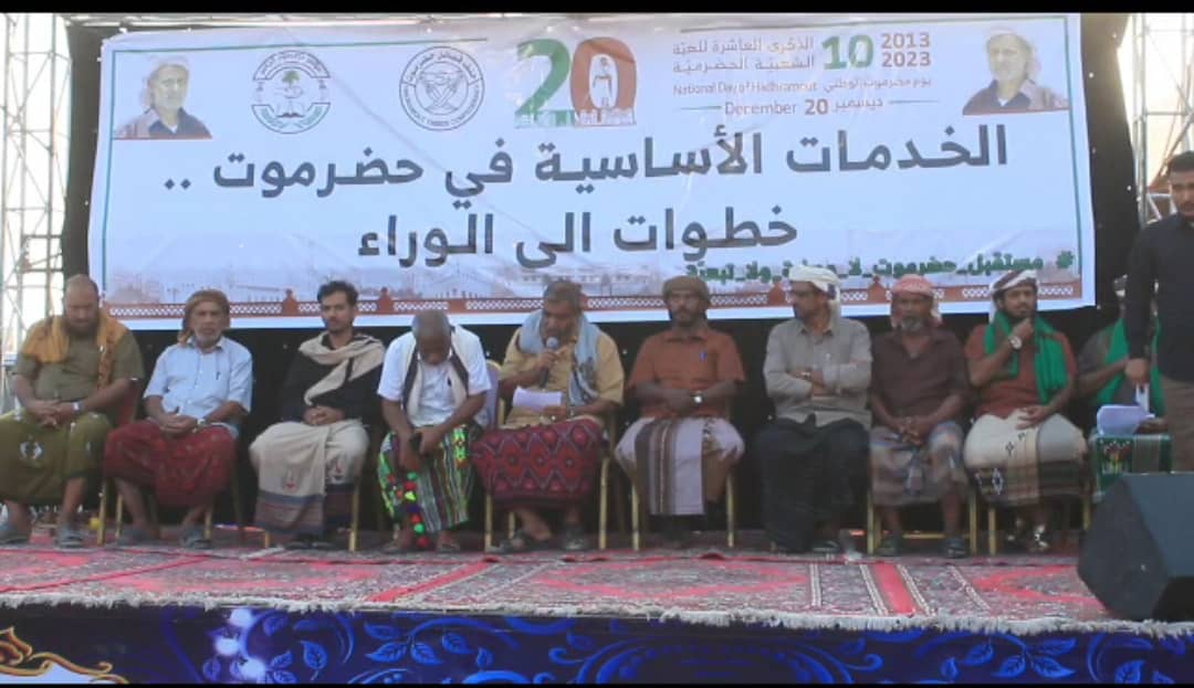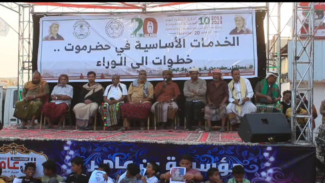 و استمر الحفل الفني و الخطابي بكلمة الشيوخ و الأعيان نيابة عن أهالي المنطقة تكرم المقدم محمد عمرو بن حبار بإلقاء كلمة حث فيها الجميع على الاصطفاف و التعاون مبين أهمية هذا المناسبة في توحيد الصف ودعى الجميع للوقوف وقفة رجل واحد مع مطالب حضرموت .