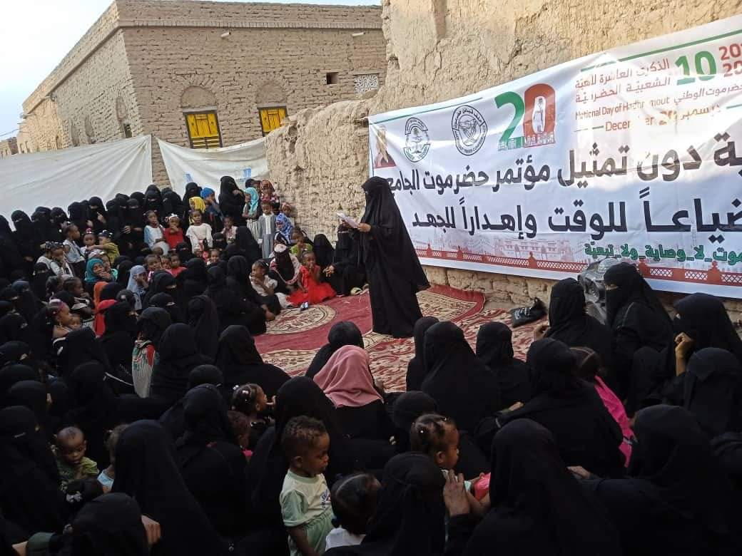 نظمت دائرة المرأة بمؤتمر حضرموت الجامع بمديرية حجر تجمعًا نسويًا في منطقة الرياض، وذلك ضمن برنامج الاحتفاء بالذكرى العاشرة للهبة الشعبية الحضرمية يوم حضرموت الوطني.