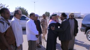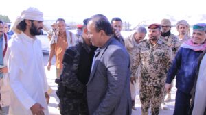 وكان في استقباله أثناء وصوله بمطار سيئون الدولي كلاً من وكيل المحافظة الحكم سالم بن شرمان، وقائد المنطقة العسكرية الأولى اللواء الركن صالح طيمس وعدد من مدراء العموم والقيادات العسكرية والأمنية والشخصيات الاجتماعية.