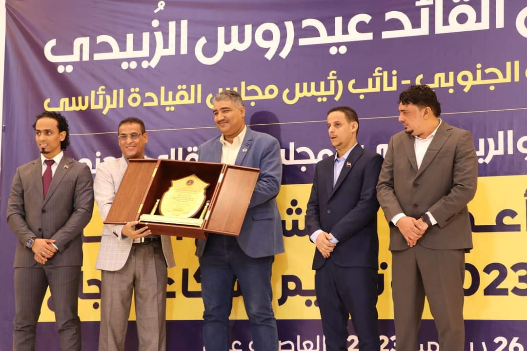 برعاية اللواء عيدروس قاسم الزُبيدي رئيس المجلس الانتقالي الجنوبي نائب رئيس مجلس القيادة الرئاسي وبحضور عضو هيئة رئاسة المجلس الانتقالي الجنوبي رئيس انتقالي العاصمة عدن الأستاذ مؤمن السقاف ونزار هيثم رئيس الهيئة الشبابية بالأمانة العامة نظمت دائرة الشباب والرياضة بالأمانة العامة لهيئة رئاسة المجلس الانتقالي الجنوبي، اليوم الثلاثاء، حفل ختام أعمال ومشاريع الدائرة خلال العام 2023 وتكريم شركاء النجاح.