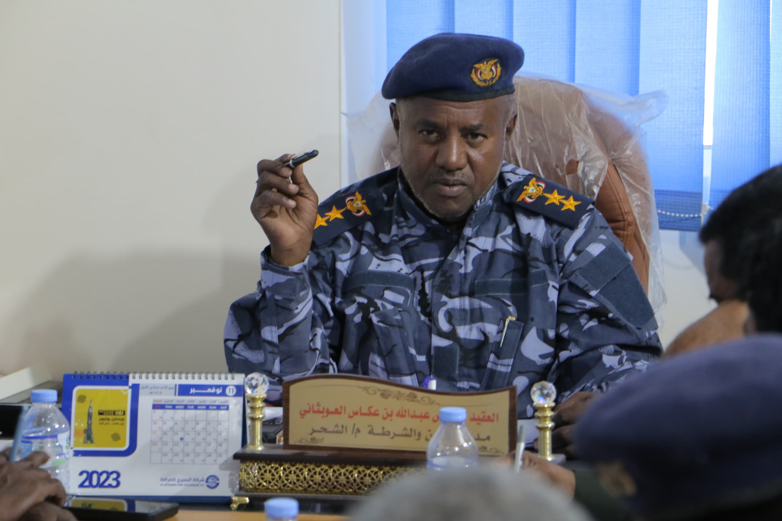 بتوجيهات من مدير أمن مديرية الشحر العقيد عوض بن عكاس العوبثاتي ، أدار العقيد صالح مبروك السباعي نائب مدير إدارة الأمن بمديرية الشحر ، لقاء ضم رؤساء الأقسام و المراكز بالمديرية ، و ذلك لمناقشة الحالة الأمنية بالمديرية و النشاط الأمني خلال العام 2023 م و كذا المشاكل و المعوقات التي تواجه سير عمل المراكز و التشديد على تحري الجريمة فور وقوع حدوثه في أي من المراكز بالمديرية.