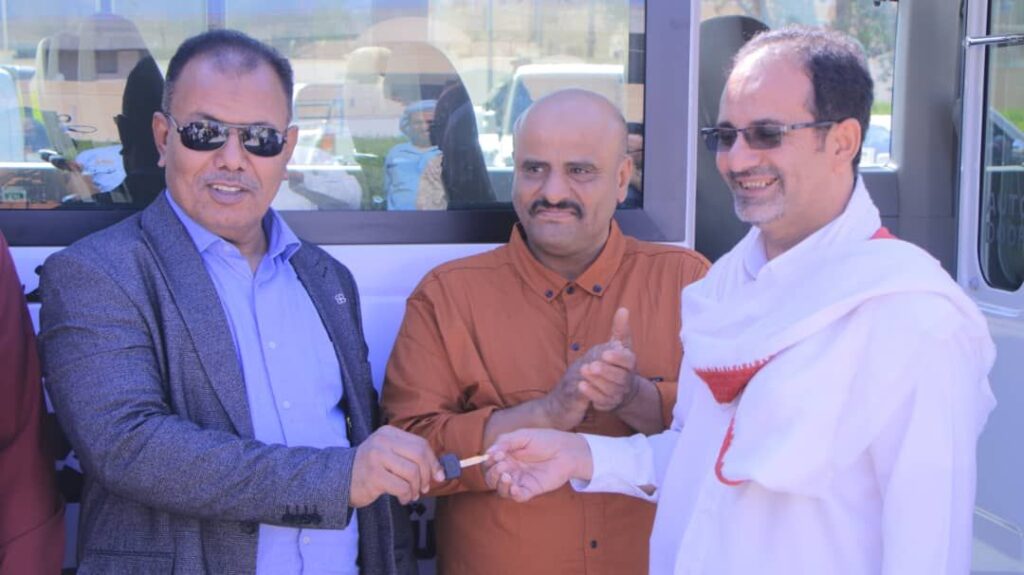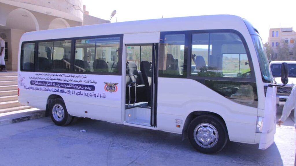 سلَم وكيل محافظة حضرموت لشؤون مديريات الوادي والصحراء الاستاذ ،عامر سعيد العامري ، صباح اليوم ، السلطة المحلية بمديرية رخية حافلة نقل حديثة 22 راكب لنقل طلاب الامتياز بالمديرية ، مقدمة من وزارة النفط والمعادن وشركة كالفالي بتروليم قطاع 9 بكلفة إجمالية 57 ألف و400 دولار ، ضمن مشاريع لجنة التنمية الاجتماعية بوادي حضرموت.
