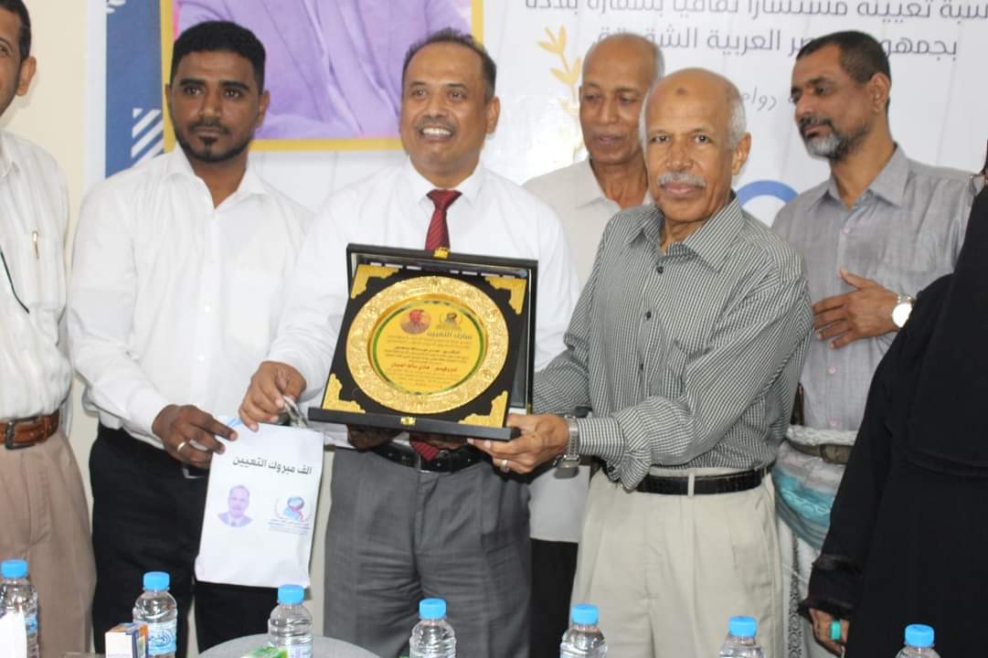هذا وقد عبر الجميع عن سعادتهم بهذا الإنجاز الذي يعد مفخره للجميع ، وتم منحه درع شكر وعرفان لكافة جهوده المتميزة والمبذولة لعدة سنوات في خدمة المؤسسة , مقدمين له التهاني والتبريكات بمناسبة تعيينه مستشاراً ثقافيا بسفارة الجمهورية اليمنية في مصر .