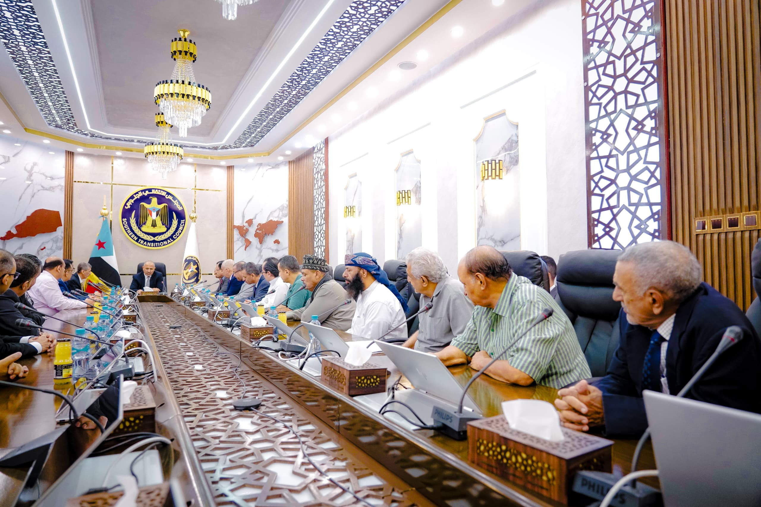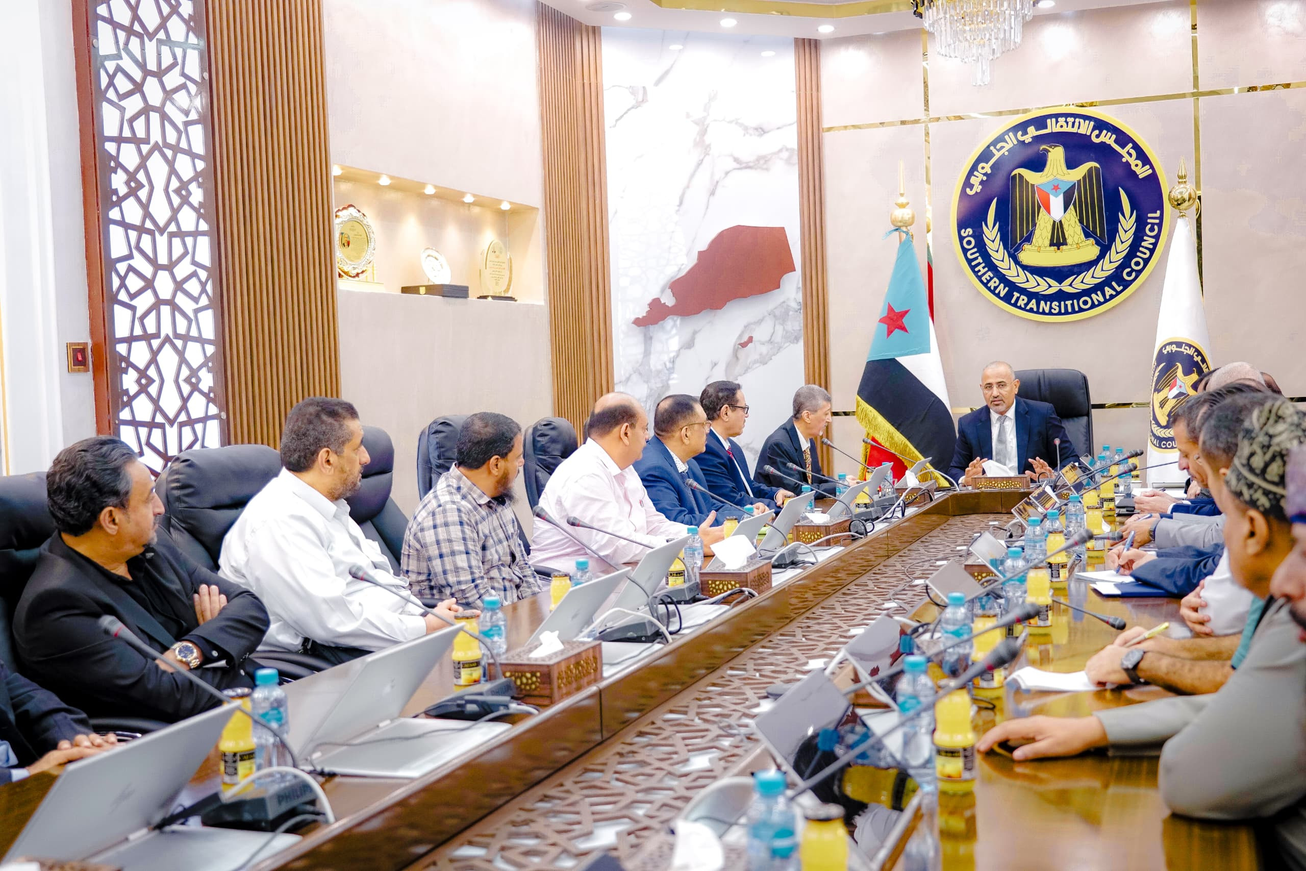 التقى عيدروس قاسم الزبيدي رئيس المجلس الانتقالي الجنوبي، نائب رئيس مجلس القيادة الرئاسي بمكتبه اليوم الخميس، عددا من رجال المال والأعمال والبيوت التجارية بعدن، يتقدمهم أبو بكر باعبيد رئيس الغرفة التجارية والصناعية بالعاصمة.