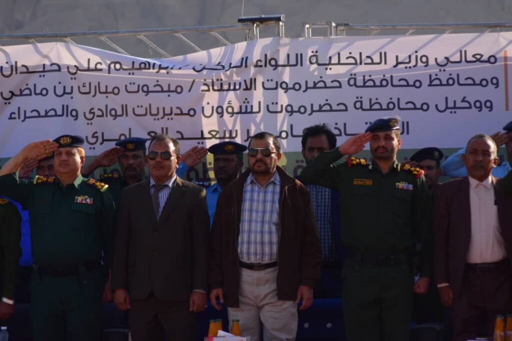 بدوره أكد مدير عام أمن وشرطة وادي وصحراء حضرموت العميد ركن عبدالله بن حبيش أن القيادات الأمنية عملت بشكل تكاملي سعياً الى رفد الأجهزة الأمنية بالكفاءات الأمنية من خلال تخريج دفع جديدة، وعمل دورات متخصصة للكوادر الأمنية ،وكذا تفعيل دور التوجيه المعنوي، مشيداً بدعم السلطة المحلية ممثلة بمحافظ المحافظة الاستاذ مبخوت بن ماضي ووكيل المحافظة الاستاذ عامر سعيد العامري ومساندتها للأجهزة الأمنية في سبيل تحقيق رؤية قيادة الأمن وخططها الرامية لفرض الأمن والاستقرار، منوهاً في حديثه بدعم رئيس وأعضاء مجلس القيادة الرئاسي وقيادة وزارة الداخلية التي ساهم بشكل كبير في استتباب الأمن بحضرموت.