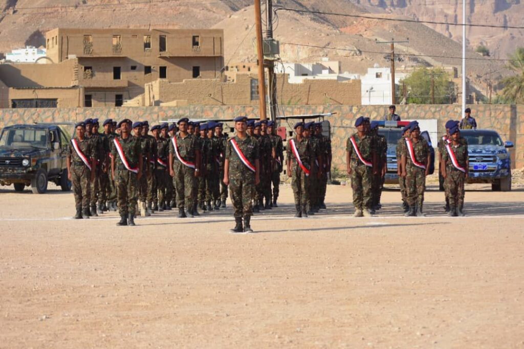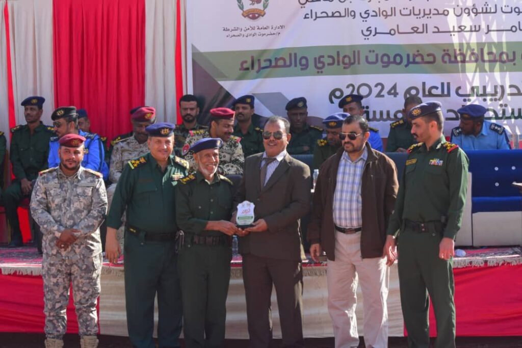 وفي الحفل الذي حضره وكيل محافظة حضرموت الحكم سالم بن شرمان؛نقل الوكيل العامري تحايا رئيس مجلس القيادة الرئاسي الدكتور رشاد العليمي، وأعضاء المجلس ،مشيراً الى أن السلطة المحلية بمعية قيادة الأمن وضعت توجيهات رئيس الجمهورية لتسجيل وضم 3000 الف جندي لقوام الأمن بوادي وصحراء حضرموت كأولوية ملحًة لتنفيذها في سبيل تثبيت دعائم الأمن والاستقرار ، فكانت أول نتيجة تخريج الدفعة الأولى في بداية العام 2023م،واليوم نحتفل بتخريج الدفعة الخامسة بتخرج عدد اجمالي 1700 جندي،كانوا رافداً للجهات الأمنية وعنصراً أساسياً في تعزيز الحالة الأمنية بعموم مديريات الوادي والصحراء.