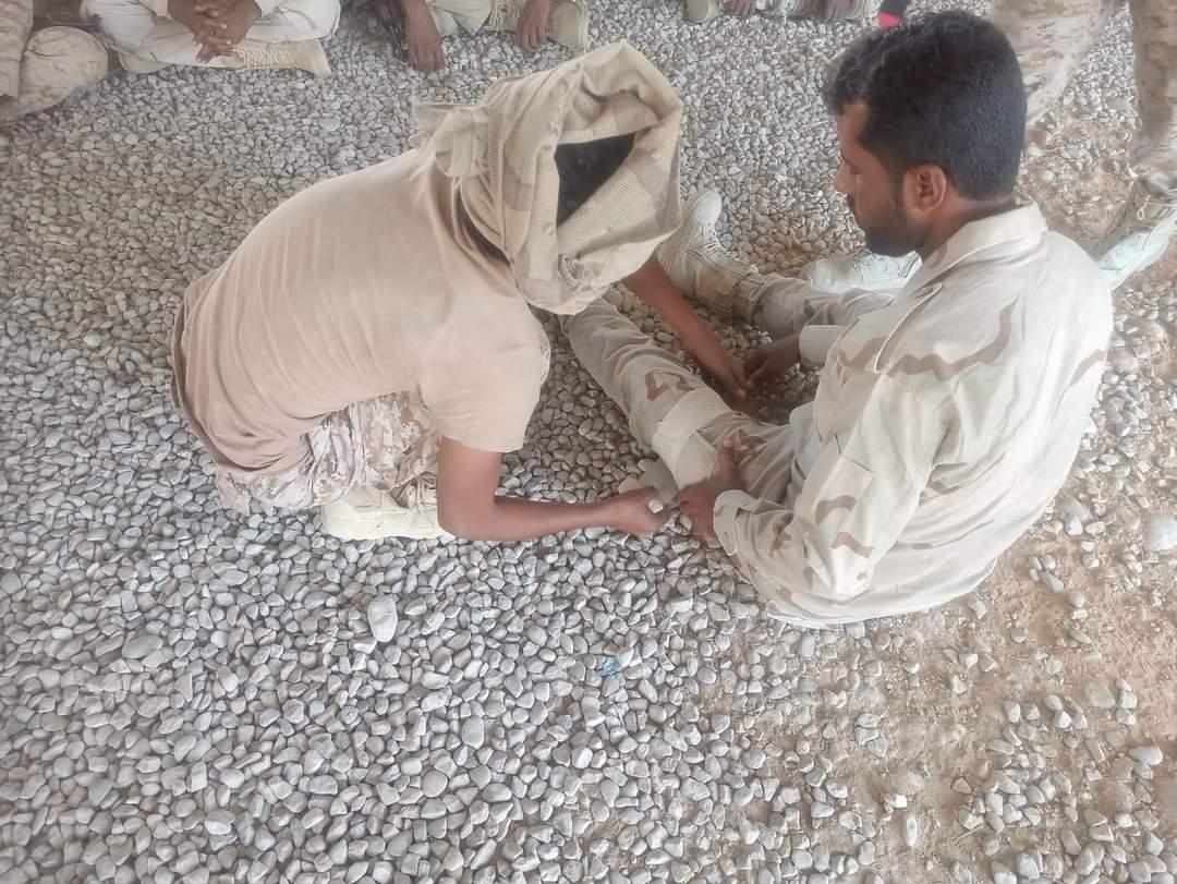 وتحدث عن أهمية الاسعافات الأولية للجروح وتجنب تلوثها حيث نفذ بيان عملي على بعض الأفراد في كيفيه التعامل مع الاسعافات والجروح وكيفيه ربطها بالرباط الضاغط، وأيضاً أعطى بيان عملي للأفراد نفذُ من خلاله كيفيه الاسعافات الأولية والجروح وكيفيه عمل الرباط الضاغط لها بعد شرح وافي ومكثف من قبل الدكتور،
